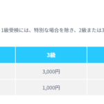 | 検定料 | バッジテスト3級 試験料:3,300円 認定料:1,100円 合計4,400円 バッジテスト2級 試験料:3,300円 認定料:2,200円 合計5,500円 バッジテスト1級 試験料:3,300円 認定料:2,200円 合計5,500円 ※1級受検には、2級または3級の取得が必要です。 |